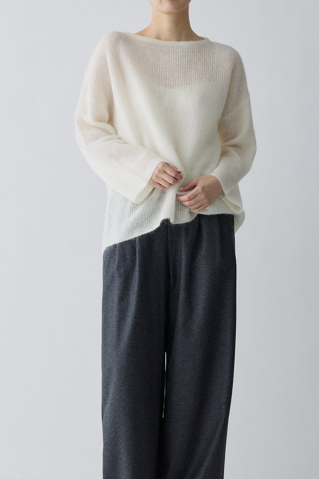 柔らかなモヘア高混率の糸を、甘くふんわりと編み立てたニットプルオーバー。