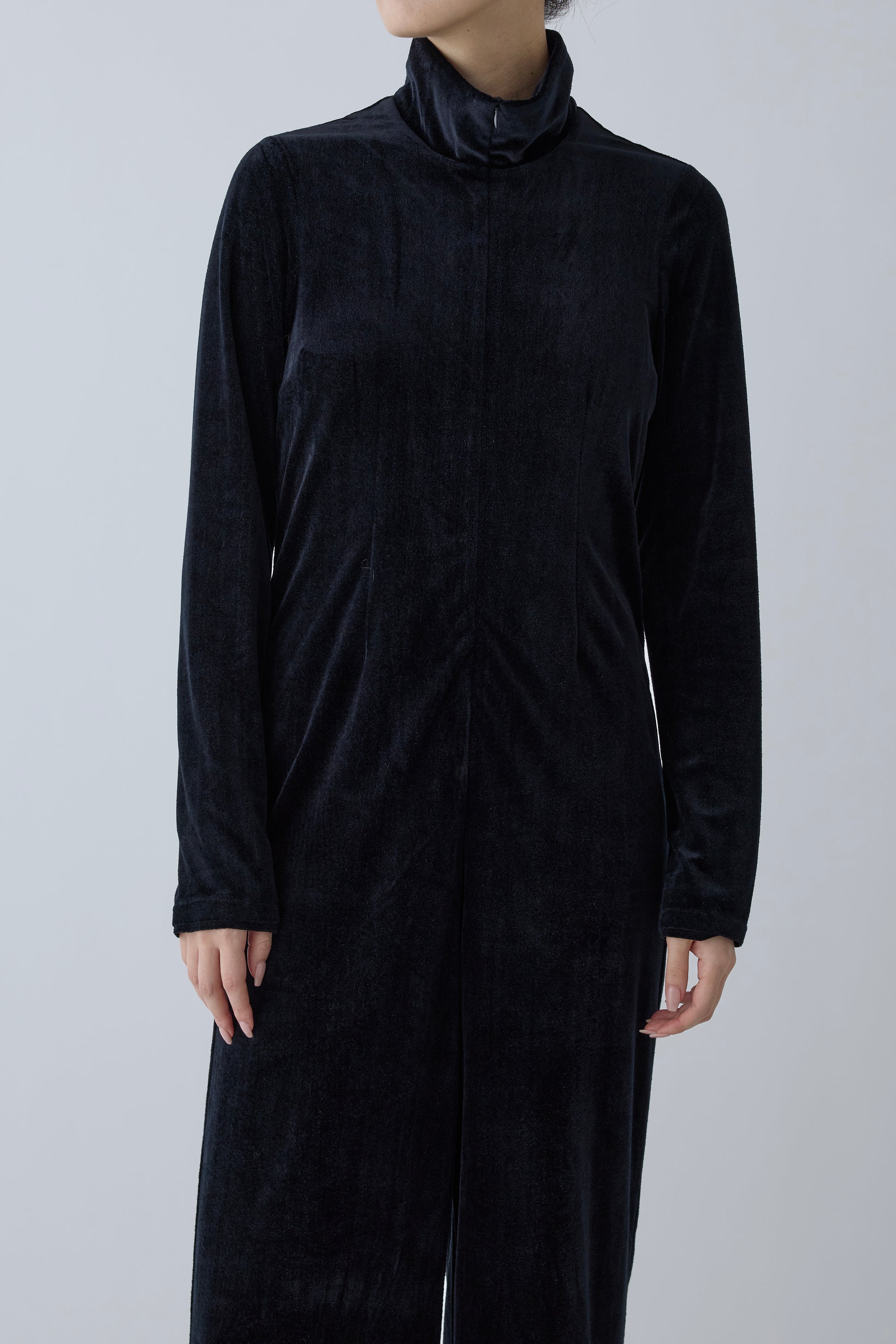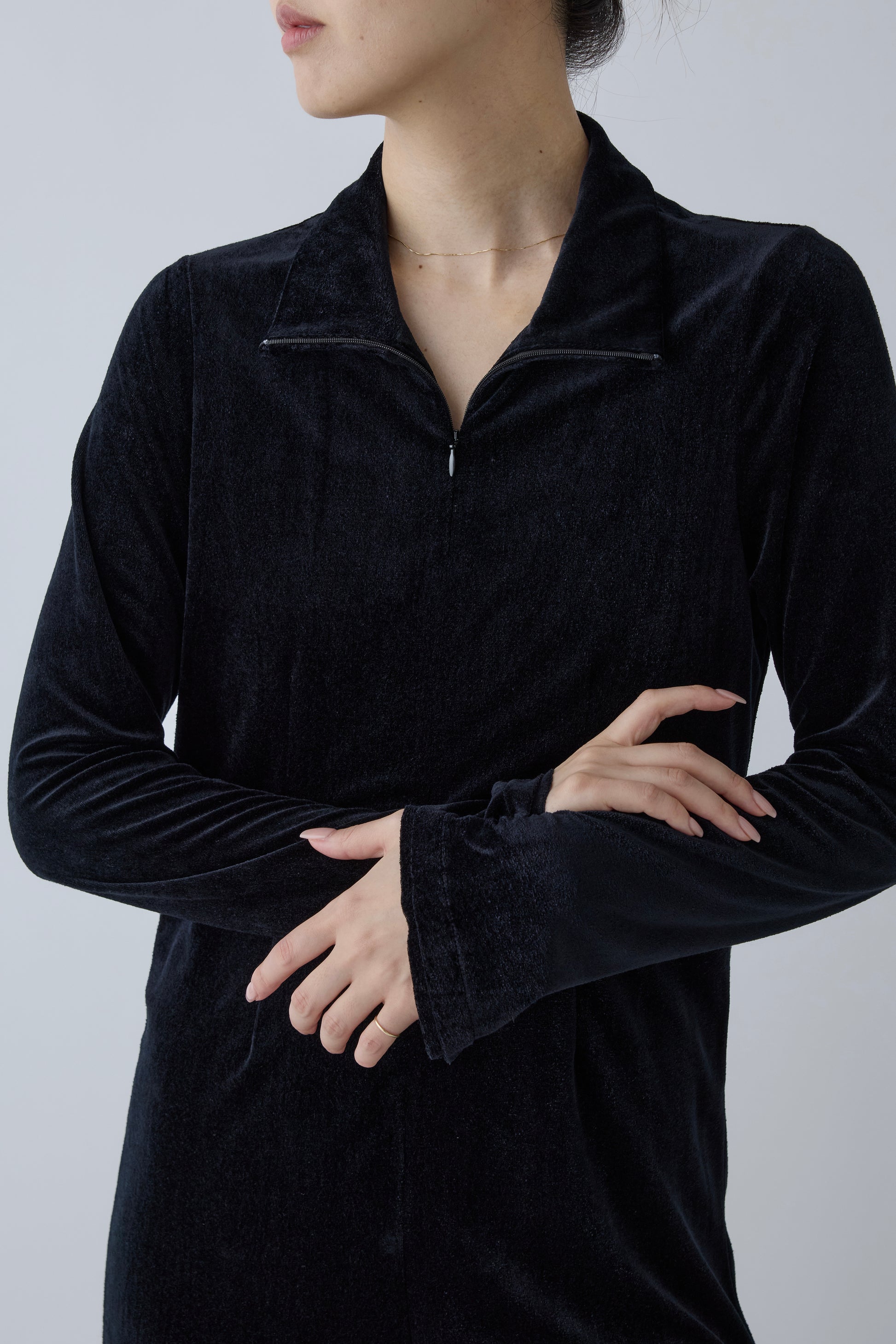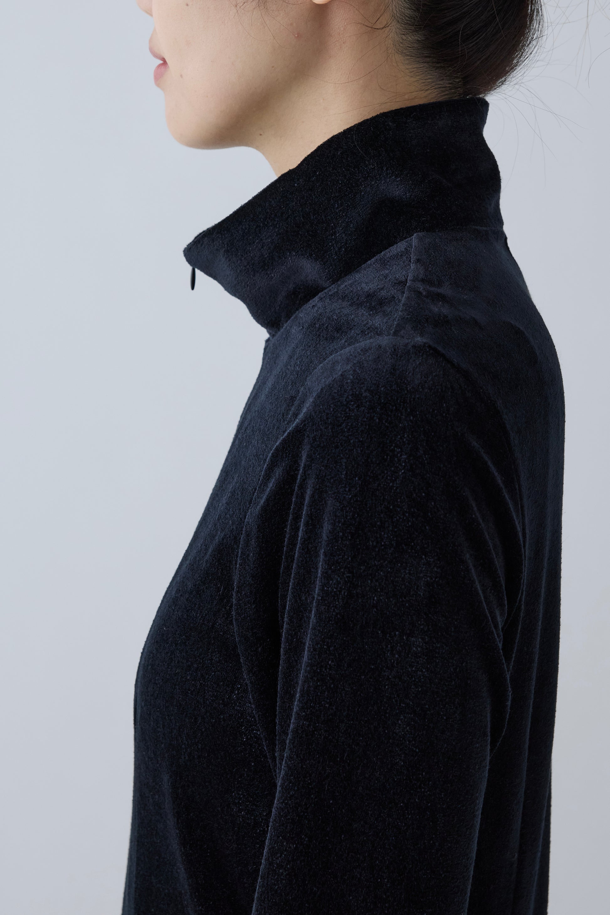 モダールをベースにした、しなやかな落ち感のある薄手のベロア素材を使用。