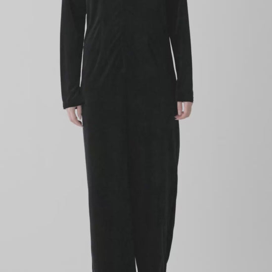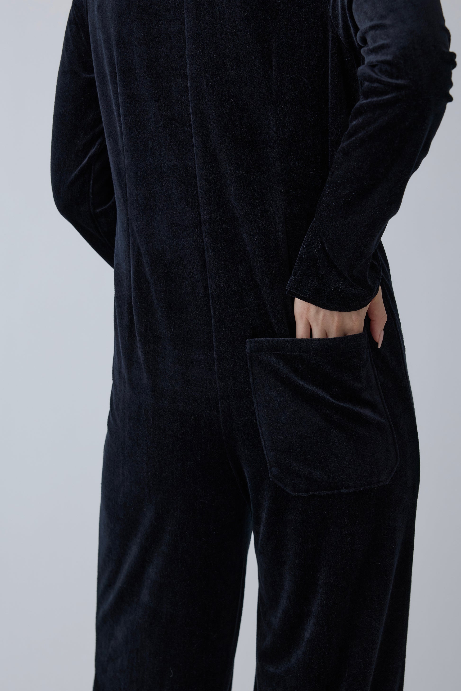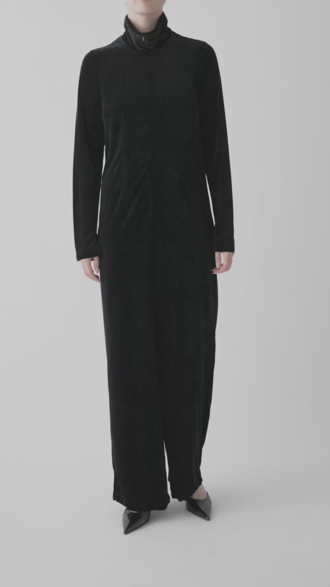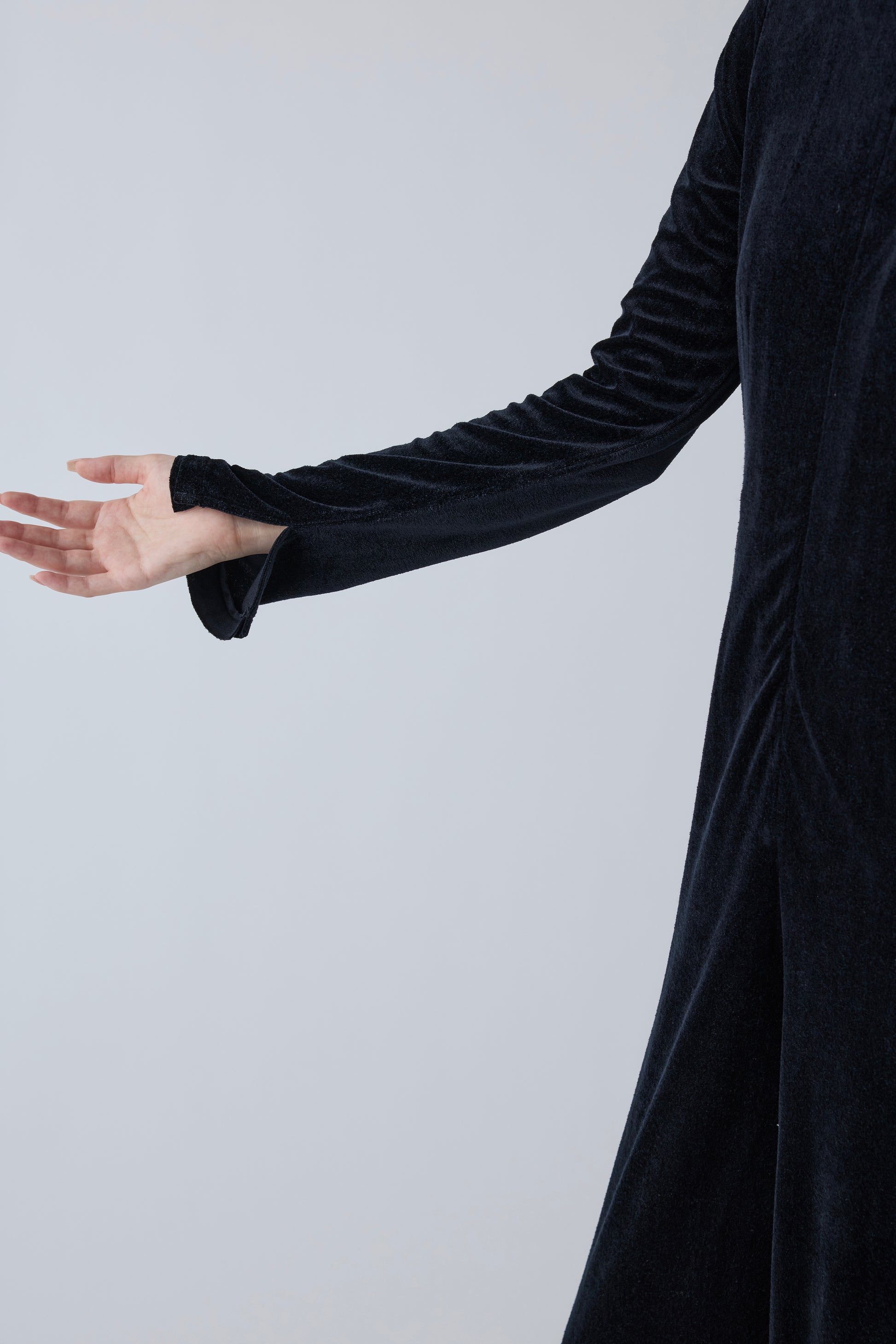モダールをベースにした、しなやかな落ち感のある薄手のベロア素材を使用。