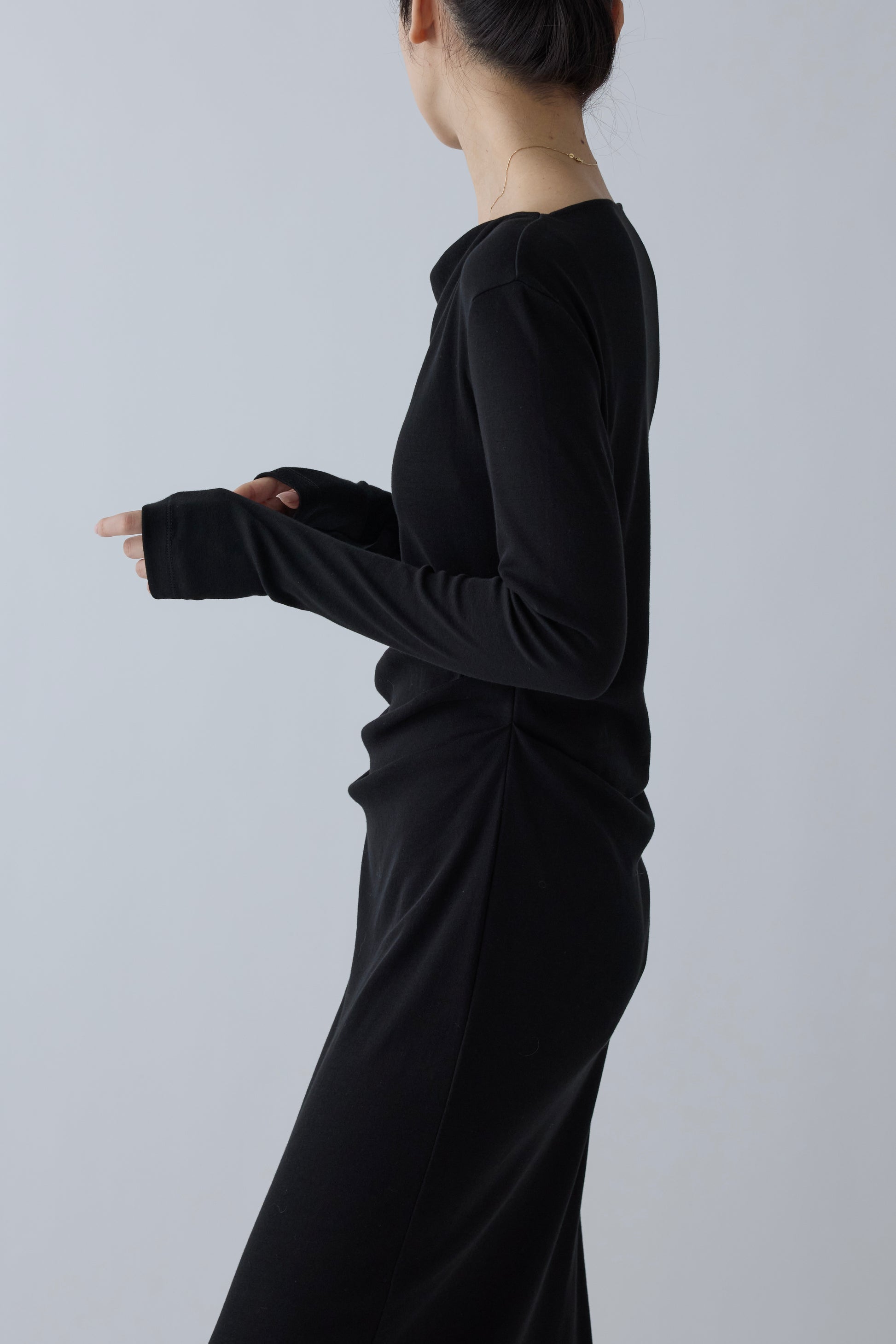 しなやかに引き立て、長めのスリーブは